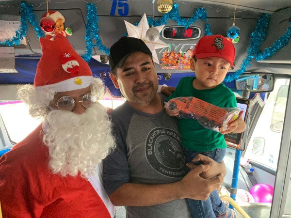 Santa Claus al volante; Jacinto Ortiz reparte dulces y regalos a niños vallenses