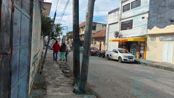 Vecinos de la calle Francisco I. Madero, esquina con Bolívar, alertaron sobre una situación de alto riesgo debido al mal estado de varios postes, un...