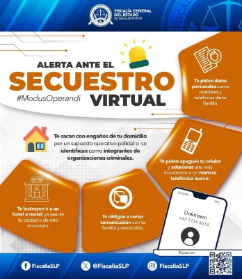La Fiscalía General del Estado de San Luis Potosí (FGESLP) alerta sobre un tipo de extorsión telefónica que simula el secuestro de un familiar par... leer Más