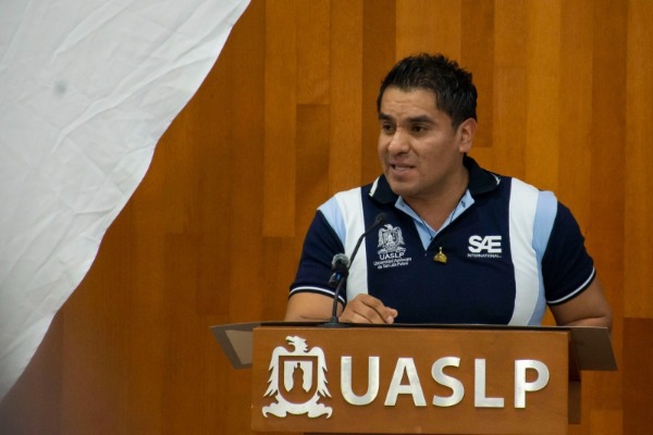 Con el estacionamiento del área de Posgrados de la Universidad Autónoma de San Luis Potosí (UASLP) lleno de vehículos, remolques, futuros ingenier...