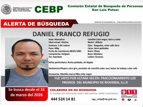 Redacción Autoridades activaron la ficha de búsqueda para la localización de otro hombre del municipio de Rioverde... leer Más