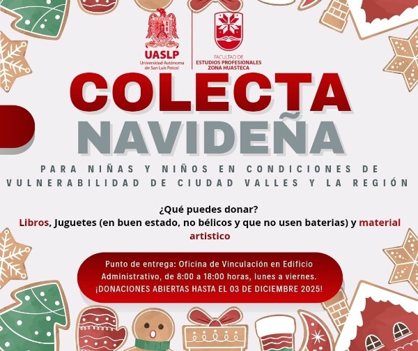 La Facultad de Estudios Profesionales de la Zona Huasteca (FEPZH) Campus Valles invita a la población a participar en la Colecta Navideña de Juguete... leer Más