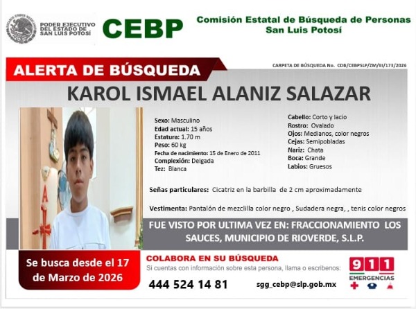 Autoridades emitieron la alerta de búsqueda para la localización de joven mujer, vista por última vez el 14 de marzo pasado en el ejido de San Marc...