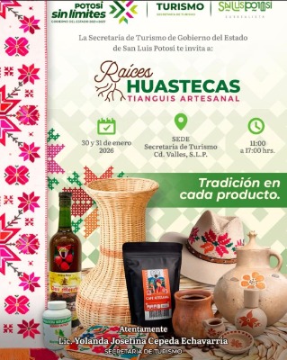 La Secretaría de Turismo del Gobierno del Estado de San Luis Potosí invita al público en general a participar en "Raíces Huastecas, Tianguis Artes...
