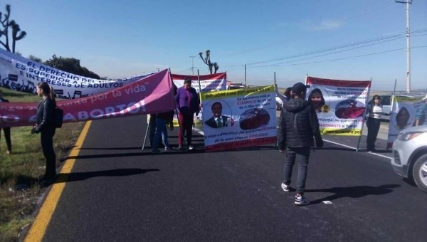 Manifestantes en contra de la despenalización del aborto se encuentran a la altura del Km 85 antes del Arco Norte en dirección a Pachuca
