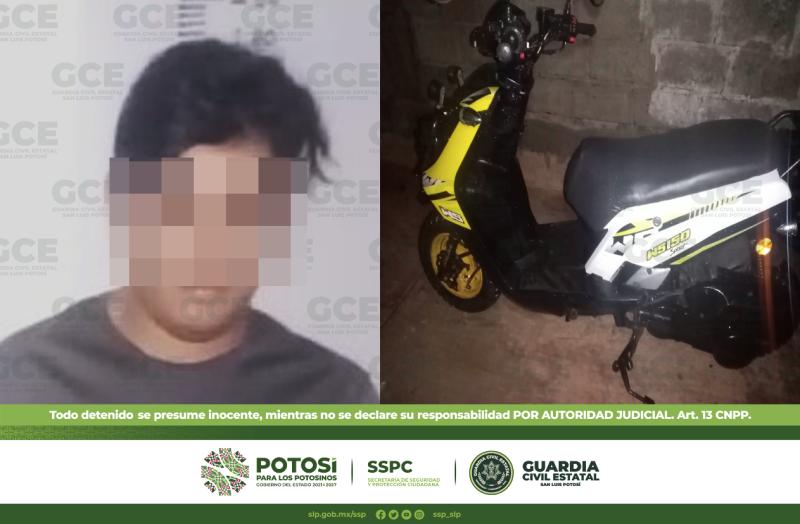 Mediante un operativo de seguridad y vigilancia que efectúan de manera constante elementos de la Guardia Civil Estatal (GCE) en el municipio de Tamazunchale, se detuvo a un hombre en la localidad de Zacatipan luego de presumiblemente manejar a exceso de velocidad una motocicleta.