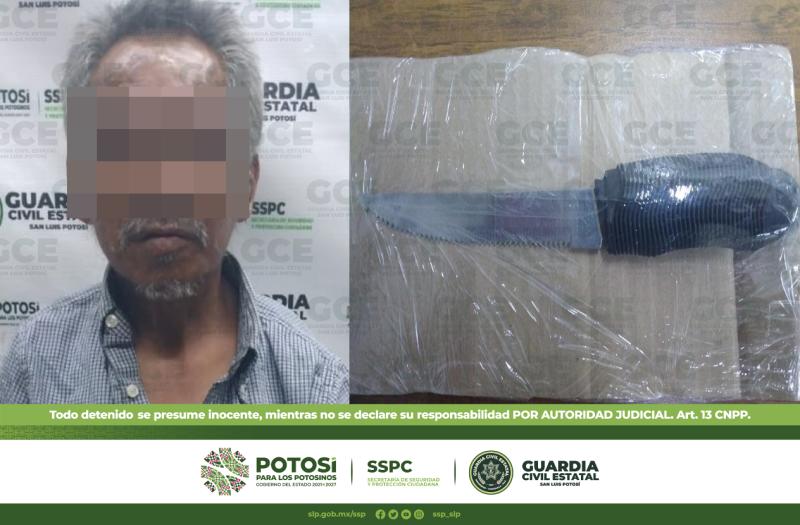 Tras indicarle el probable delito en el que incurría, quedó detenido y fue puesto a disposición de la Fiscalía General del Estado junto con el arma blanca.