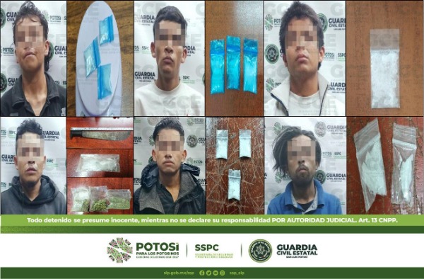 Gracias al Plan Integral de Seguridad implementado por la Guardia Civil en todo el territorio de San Luis Potosí para brindar paz y tranquilidad a los y las potosinos, se logró el aseguramiento de 18 personas en distintos hechos en posesión de distintos narcóticos.
