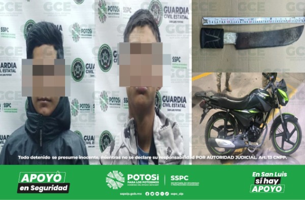 Por tales hechos, ambos fueron detenidos, junto con la unidad y un machete de casi 49 centímetros, con el que se desplazaban, quedando a disposición de la Fiscalía General del Estado.