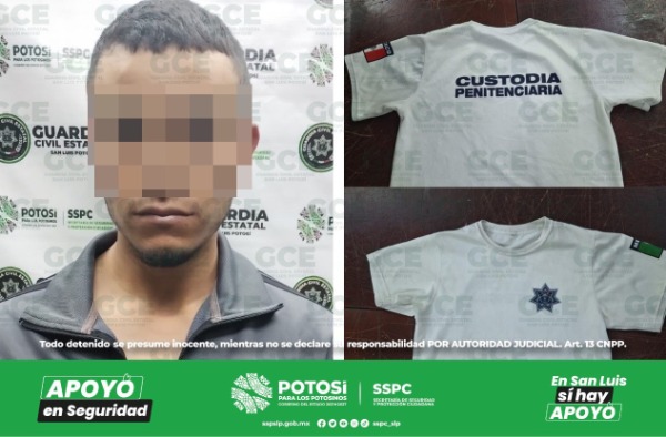 Mediante los dispositivos preventivos, efectuados en la zona metropolitana, a fin de evitar la comisión de actos que puedan poner en riesgo la tranquilidad de la ciudadanía, un hombre resultó detenido por la Guardia Civil Estatal (GCE) tras sorprenderlo con una playera de Custodia Penitenciaria; al no aparecer como miembro activo de alguna corporación de seguridad, fue detenido por el probable delito de usurpación de funciones.