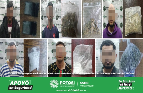 Uno de los presuntos se ubicó en la zona centro de la capital potosina, se trata de Josué "N" de 36 años de edad, con una dosis de "cristal"; en la colonia Las Julias, un joven de 16 años se detectó con una dosis de marihuana; a su vez, en la colonia Terremoto, Noé "N" de 25 años quedó detenido luego de asegurarle una dosis de "cristal".