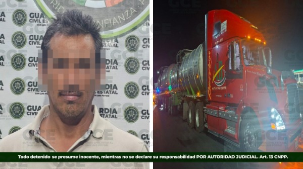 Como parte de los trabajos enfocados en la prevención de hechos constitutivos de delito, la corporación estatal informó sobre un operativo desplegado en el Libramiento Arco Norte de San Luis, en las inmediaciones de Peñasco de la capital potosina, donde en uno de los paradores de descanso de viajeros y transportistas, fue detenido un hombre, quien no pudo acreditar la posesión legal de 63 mil litros de hidrocarburo que transportaba en un tractocamión acoplado a dos pipas.
