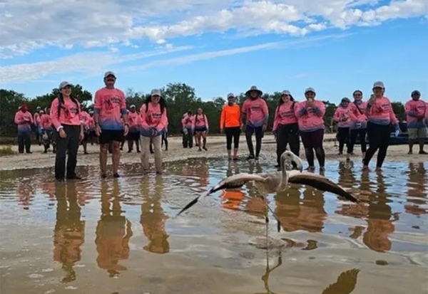 La Conanp, indicó que, por primera vez en la historia del anillamiento, se logró la integración de un grupo de mujeres en el arreo del flamenco rosado conformado por Estefanía Munguía de Miami Zoo y las guardaparques Alexandra Dzib, Ared Pereyra, Arleti Pérez y Margarita Canul.