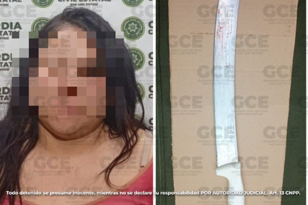 A la mujer se le aseguró un cuchillo largo tipo carnicero con el que presuntamente agredió al hoy occiso, por lo que fue detenida y puesta a disposición de la Fiscalía General del Estado.