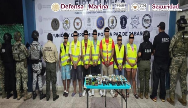 Derivado de trabajos de inteligencia e investigación, en Tabasco, elementos de la Secretaría de Seguridad y Protección Ciudadana (SSPC), Secretaría de la Defensa Nacional (Defensa), Secretaría de Marina (Semar), Fiscalía General de la República (FGR) y Guardia Nacional (GN), junto con Secretaría de Seguridad y Protección Ciudadana (SSyPC) y Fiscalía General del Estado, ambas de Tabasco y Policía Municipal de Jalpa de Méndez, en dos acciones operativas realizadas en los municipios de Macuspana y Jalpa, detuvieron a ocho personas, a quienes les aseguraron armas y droga.
