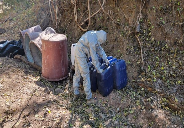 En otra acción en el mismo municipio, se localizaron e inhabilitaron cuatro áreas de concentración de material diverso para la fabricación de drogas sintéticas, se aseguraron 6,050 litros de sustancias químicas para la elaboración de metanfetamina, 12 reactores de síntesis orgánica y 12 condensadores. La afectación económica a la delincuencia organizada es de 123 millones de pesos.