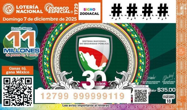 - El Sorteo Zodiaco Especial No. 1729 cuenta con un Premio Mayor de 11 millones de pesos en una serie y se realizará el domingo 7 de diciembre