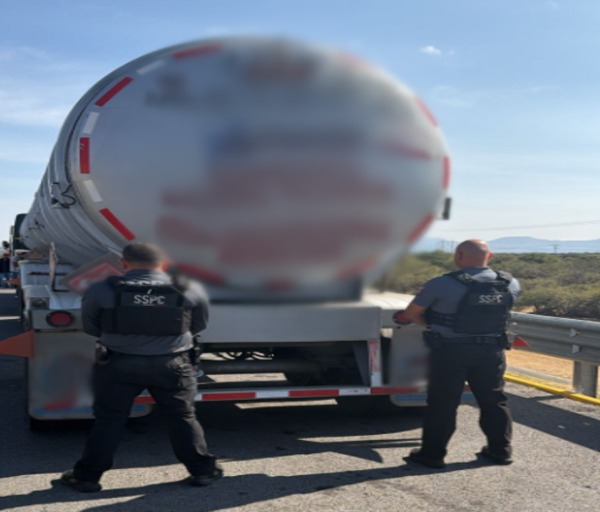 -En San Luis Potosí, elementos de la SSPC, GN y Policía Estatal detuvieron al conductor de un tractocamión acoplado a dos semirremolques que transportaba 62,000 litros de hidrocarburo, por presentar alteraciones en el número de serie del vehículo.