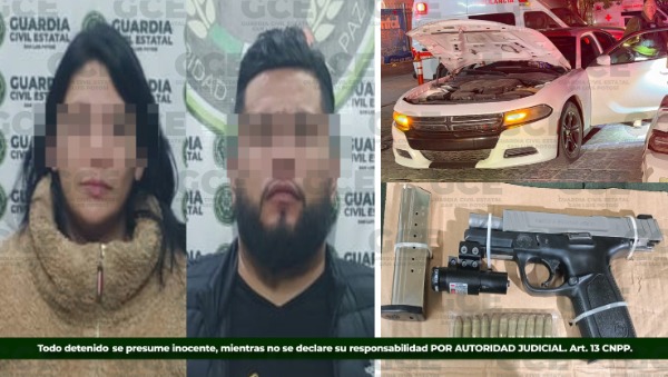 Un operativo realizado por nuestros elementos de la Guardia Civil Estatal en el Barrio de San Miguelito de la capital potosina, derivó en la detención de Juan "N" de 39 años y Alejandra "N" de 33 años, quienes fueron detenidos en posesión de un arma de fuego calibre 9 milímetros, con un cargador y 11 cartuchos útiles.