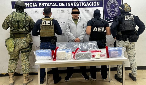En Ciudad Juárez, se detuvo a una persona, se aseguraron tres kilos de metanfetamina, dosis de metanfetamina y cocaína.