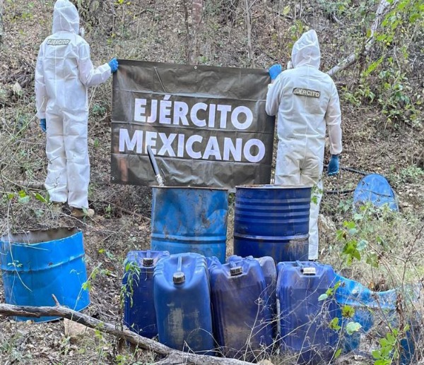 En Cosalá, se localizaron e inhabilitaron cinco áreas de concentración de material diverso para la fabricación de drogas sintéticas, se aseguraron 3,850 litros de sustancias químicas para la elaboración de metanfetamina. La afectación económica a la delincuencia organizada es de 76 millones de pesos.