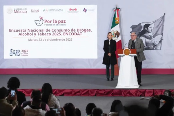 Detalló que se identificó que el consumo de drogas ilegales de forma experimental entre adultos incrementó del 10.6 por ciento en 2016 a 14.6 por ciento en 2025, desde cannabis, alucinógenos y estimulantes anfetamínicos. Mientras que en los adolescentes la tendencia a la baja se muestra en todos los tipos de drogas: en cannabis del 5.3 al 3.7 por ciento y de estimulantes anfetamínicos de 0.6 al 0.5 por ciento, así como un incremento en alucinógenos de 0.3 al 0.4 por ciento. Agregó que el cannabis es la principal droga ilegal que se consume en México, ante esto se está monitoreando la evolución del consumo de opioides.
