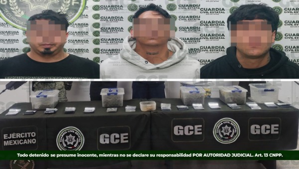 Por medio de los diversos operativos implementados en el estado potosino se obtuvo la detención de 27 personas por la probable posesión de distintos estupefacientes que atentan contra la salud y la integridad de la población potosina, lográndose el aseguramiento de 39 dosis de cristal, 4. 633.9 kilogramos de marihuana, cinco dosis de cocaína y asimismo 14 artefactos metálicos mejor conocidos como "poncha llantas".