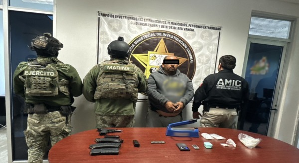 En Cajeme, se detuvo a una persona, se aseguró un arma de fuego, seis cargadores, 11 cartuchos, dos bolsas con cristal, un recipiente con metanfetaminas y un inmueble.