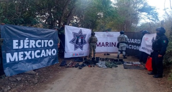 -En José Azueta, en el poblado San José Ixtapa, elementos de Semar, Ejército Mexicano, GN, Policía Estatal y Municipal aseguraron siete armas largas, 693 cartuchos, cinco cargadores, tres radios de comunicación, equipo táctico y químicos.