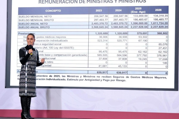 De acuerdo con lo que explicó la presidenta en su conferencia, entre los gastos que desaparecieron están el seguro de gastos médicos mayores, el seguro de separación individualizado, el estímulo por antigüedad, medicinas complementarias y alimentos. Además, se cancelaron los beneficios por medicamentos para ministros en activo y retirados, apoyo en alimento, becas, y material bibliohemerográfico.