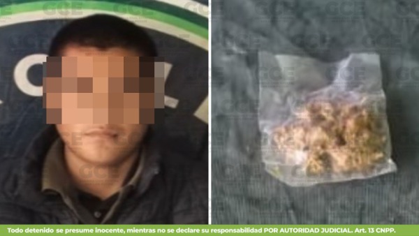 El presunto, identificado como Gabriel "N" de 23 años, fue detenido con una bolsa con marihuana. Tras consultar su estatus, resultó con un mandamiento judicial vigente del 2024, por presuntos delitos contra la libertad y el normal desarrollo psicológico. Por ello fue puesto a disposición de las autoridades correspondientes.