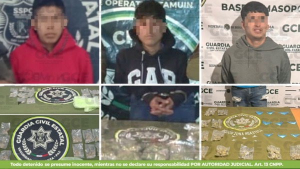 En el marco de la cobertura que brinda la Guardia Civil Estatal para brindar mayor protección y seguridad a toda la población, se informa la detención de tres presuntos vendedores de estupefacientes a través de distintas acciones efectuadas en Municipios de las regiones Media y Huasteca.