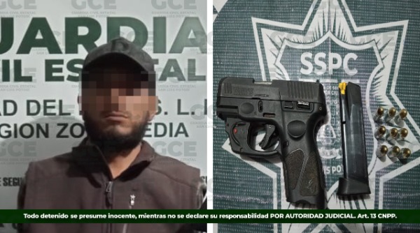 A través de operativos de seguridad e inteligencia, la GCE detuvo a Juan Pablo "N" de 35 años, luego de que fuera asegurado con un arma de fuego abastecida con un cargador con nueve cartuchos útiles, en la colonia Nuevo San Rafael, en el municipio de Ciudad del Maíz.