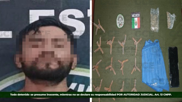 En el marco de las acciones permanentes para el combate a la delincuencia organizada en la zona Huasteca, elementos de la Guardia Civil Estatal (G.C.E.) llevaron a cabo la detención de un masculino señalado por su probable responsabilidad en los delitos de portación de armas prohibidas, obstrucción de la seguridad pública y posesión de droga.