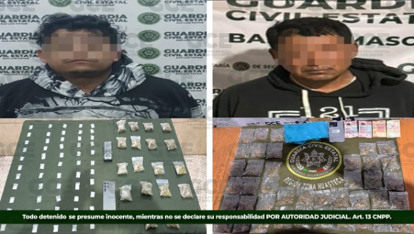 Dos presuntos fueron detenidos con diversas dosis de estupefacientes y dinero en efectivo en Tamasopo y en la capital potosina.