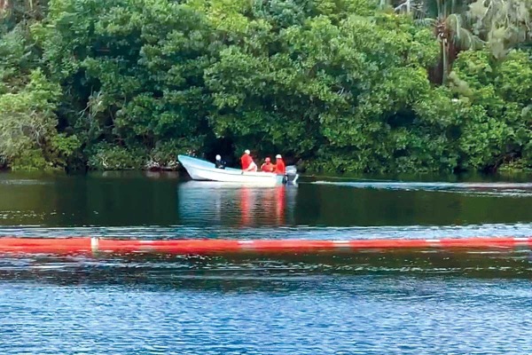 Autoridades despliegan barreras de contención por presencia de hidrocarburo