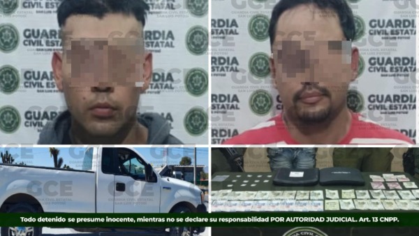 Uno de los hechos tuvo lugar en el municipio de Villa de Zaragoza, donde Samuel "N", de 36 años, y Luis "N", de 30 años, fueron detenidos en posesión de 11 dosis de "cristal", dos placas balísticas y 10 mil 360 pesos de probable procedencia ilegal, mientras que en otro evento, en Villa de Arista, se detuvo a Edwin "N", de 20 años, con 16 dosis de "cristal".