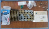 Al realizar una inspección a la unidad se localizaron 32 cartuchos útiles de diversos calibres, un cargador para arma, tres cajas con un total de 119 cartuchos de diferentes calibres y un chaleco balístico.