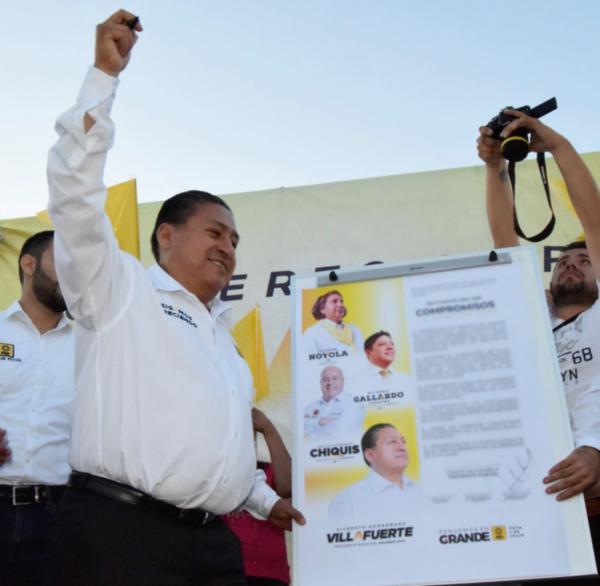 Ante el notario público número 18, Juan José Gaytán Hernández, el ingeniero Villafuerte firmó sus compromisos y dijo que "vamos a cumplir a quienes han confiado de nuevamente en nuestro proyecto de trabajo, somos gente que cumple".