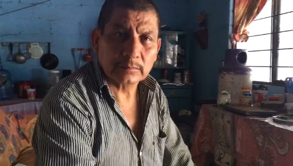 El señor Pablo Villeda es de oficio zapatero y pide a la comunidad de Ciudad Valles que lo apoyen con trabajo, con 55 años de edad cuida las 24 horas de su esposa la señora Noracely Salazar, quien está postrada en cama por una enfermedad que la aqueja y debe cuidarla las 24 horas, lo que le impide salir de su casa para trabajar.