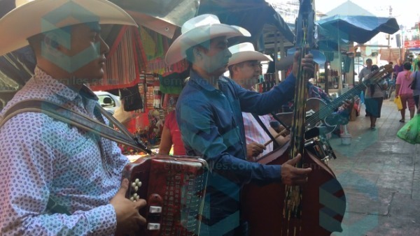 El plus de la agrupación es que tiene saxofón, acordeón, bajo sexto, farola y tololoche, recorren el mercado del centro de Ciudad Valles, dando a conocer su talento.
