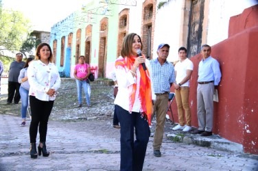 En gira de trabajo por San Nicolás Tolentino, Lorena Valle Rodríguez, Presidenta de la Junta Directiva del Sistema Estatal para el Desarrollo Integral de la Familia (DIF), entregó 300 cobijas y 120 despensas, así como 9 bicicletas a estudiantes de comunidades.