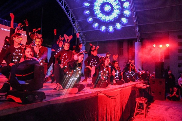En la parte escénica, destacó la participación de alumnos del taller de Apreciación Musical, cantando a coro los villansicos Noche de paz y Blanca Navidad; así también los alumnos del taller de Baile Moderno, con las coreografías: ¡Oh, Santa!, What Christmas, Means to me, Let it snow, All want for Christmas is you.