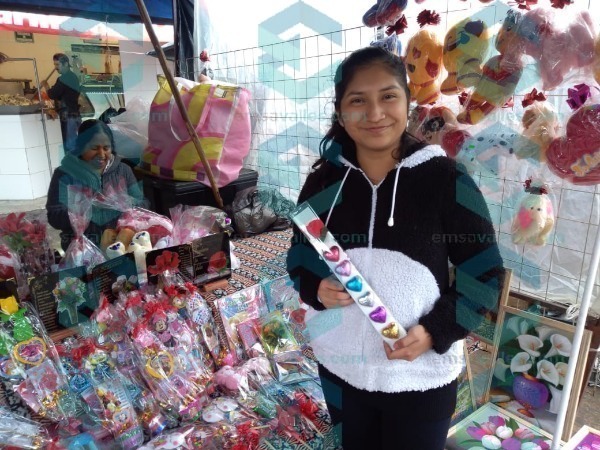Andrea Michelle, comerciante ambulante del tianguis dijo que estarán ofertando regalos, chocolates, muñecos de peluche y cuadros, los precios varían depende de los tamaños, hay cuadros de 20 a 45 pesos, pero esterán muy económicos, los muñecos de 60 y 120 pesos son los más pedidos, dulces que contienen una rosa artificial desde 25 pesos.