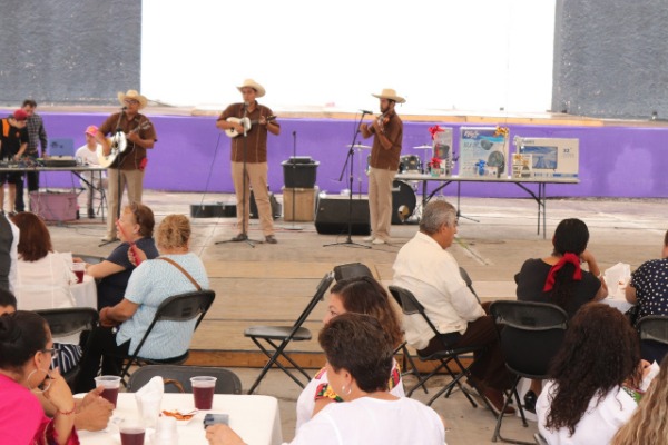 La ligera lluvia no evitó que cientos de maestros asistieran al festejo en los terrenos de la feria.