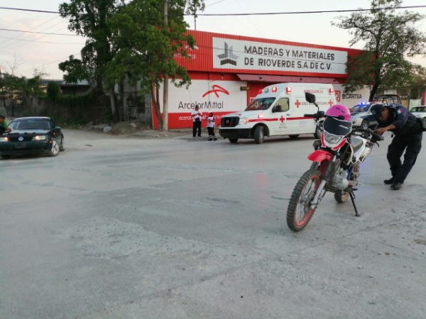 Ellos viajaban en una motocicleta tipo cross, cuando un vehículo Volkswagen Jetta se les atravesó, y el joven que traía la moto intentó esquivarlo pero derrapó, y tanto él como la joven que lo acompañaba, se cayeron.