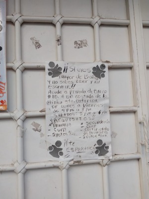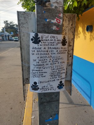 En emsavalles nos dimos a la tarea de rastrear este cartel y verificar su procedencia por lo cual acudimos a la dirección y efectivamente el cartel se encontraba en las oficinas del INEA en la zona media de misma dirección antes mencionada. Por ser días feriados No encontramos a personal laborando en el lugar pero el próximo lunes verificaremos la versión oficial de ese cartel si en verdad así está enfocada la campaña o es una estrategia publicitaria.