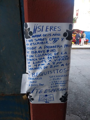 Si eres mayor de 15 años y no sabes leer y ni escribir acude a privada de Bravo número 110 a un costado de la clínica Santa Catarina de lunes a viernes de 4 pm a 8 pm sábados de 2 pm a 6:00 PM requisitos para primaria CURP y dos fotografías para secundaria CURP certificado de primaria y dos fotografías te esperamos.
