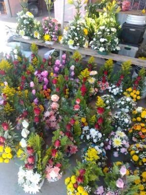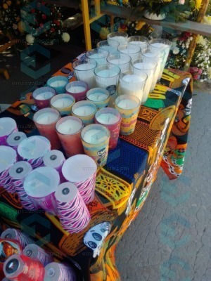 Las coronas de unicel van desde los 20 pesos la más chica, hasta los 200 pesos la extragrande, los arreglos de flores de papel de 40 y 60 pesos, las veladoras desde los 10, 15 y 20 pesos, ramos de flores sencillos el más económico es de 30 pesos y de ahí el precio subirá dependiendo del tamaño deseado.