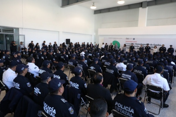 Como parte de las acciones para el fortalecimiento y dignificación del trabajo policial, la Secretaría de Seguridad Pública del Estado (SSPE), continúa con la entrega de la homologación de grados a elementos operativos de esta corporación policial.